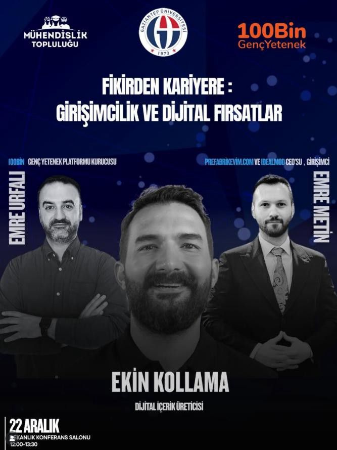 Fikirden Kariyere: Girişimcilik ve Dijital Fırsatlar" etkinliğimizi büyük bir enerji ve yoğun bir katılımla gerçekleştirildi. Etkinlik boyunca; Zihinlerdeki fikirlerin nasıl somut iş modellerine dönüşebileceğini, Dijital dünyanın sunduğu yeni nesil kariyer yollarını, ve girişimcilik ekosisteminde fark yaratmanın ipuçlarını hep birlikte konuşuldu